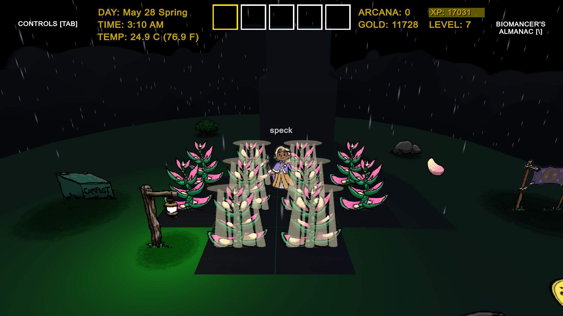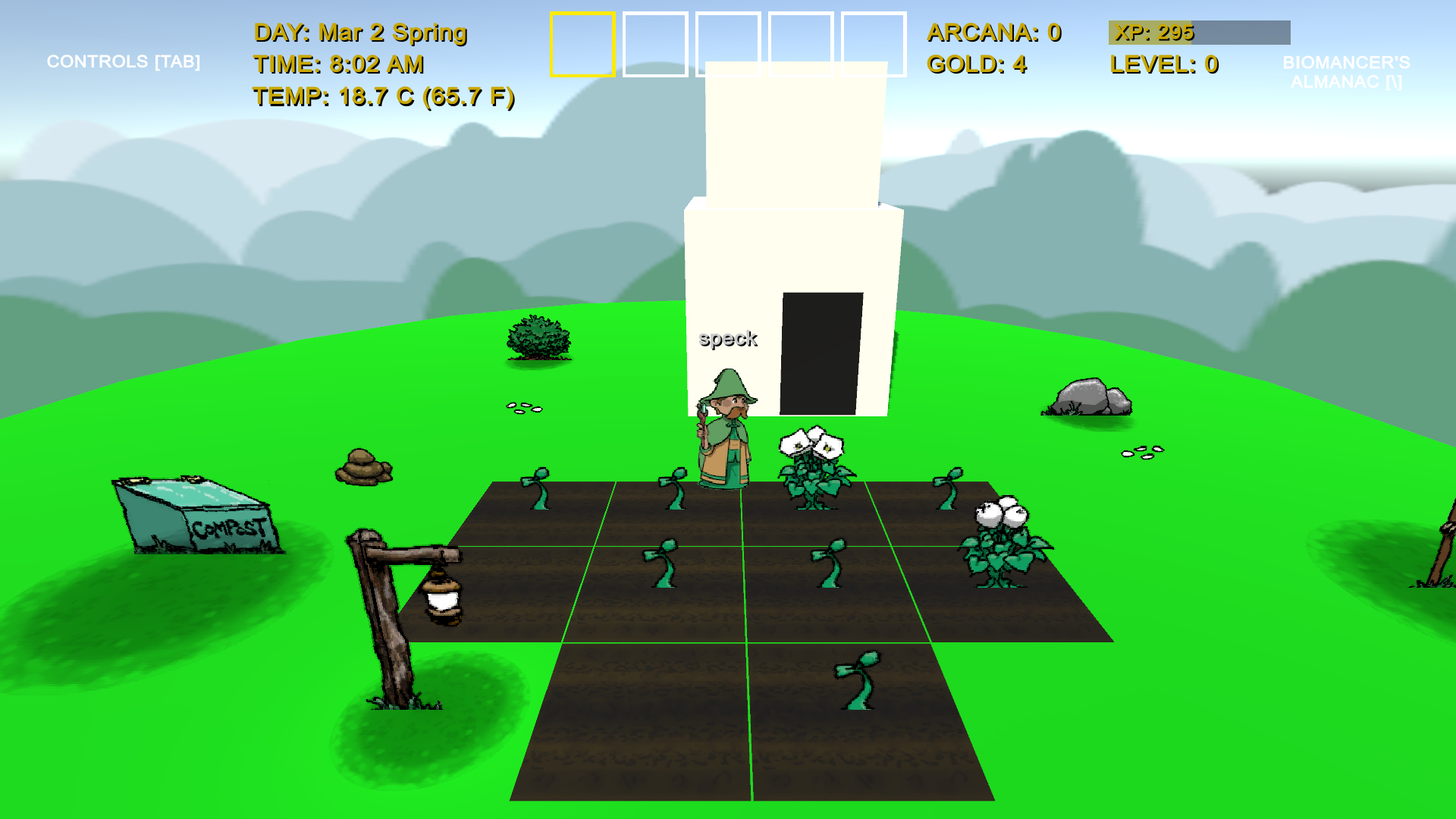GREENER PASTURES is a casual-leaning farm simulator with magic. Players manage their farm within a community of magic-users. Plants support the magic, magic supports the farm, customizing your farm, trading and strategic planning is encouraged. With over 20 skills and 30 spells, Greener Pastures offers long gameplay filled with customization and surprises. We invite yourselves to come grow your magical community and create a paradise high above the clouds! Solo play available, online multiplayer encouraged.